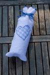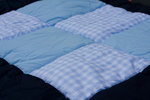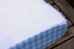 wit badstof met katoen speels afgezet met contrasterend bias-band